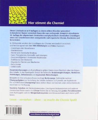 In 35 didaktisch aufbereiteten Kapiteln ist hier die allgemeine und anorganische Chemie hochaktuell und leicht verständlich zusammengestellt. Als Zusatzkapitel gibt es eine Abhandlung zum aktuellen Gefahrstoffrecht.