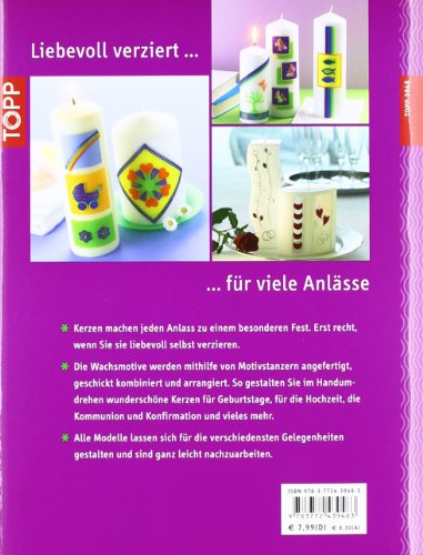 Mit Motivstanzern ist eine Kerze schnell individuell verziert. Wachsmotive können leiecht und geschickt kombiniert und arrangiert werden, egal für welchen Anlass.